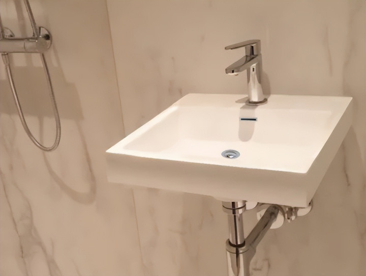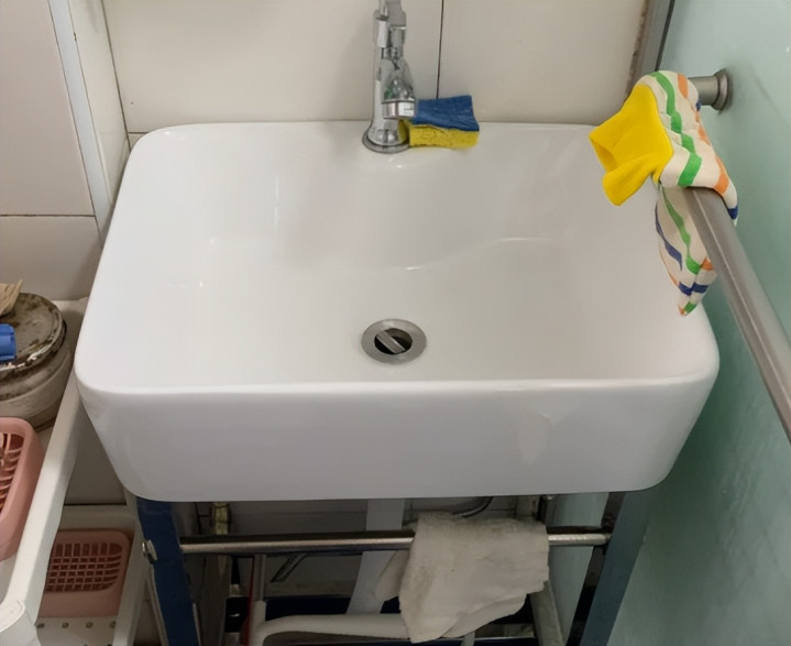 在装修的时候,让水电师傅将水管预留在卫生间门口,将洗手台固定在卫生间旁边即可。