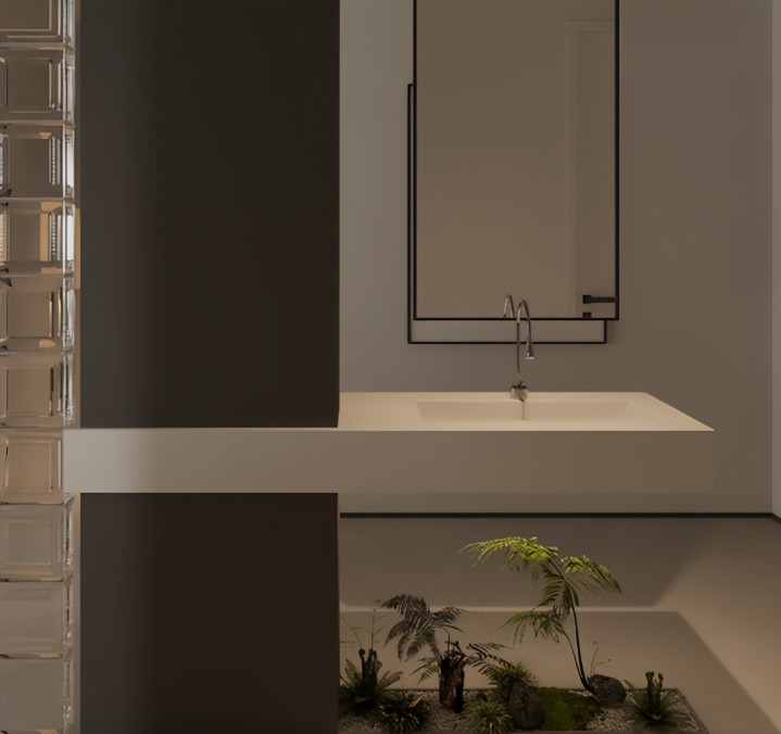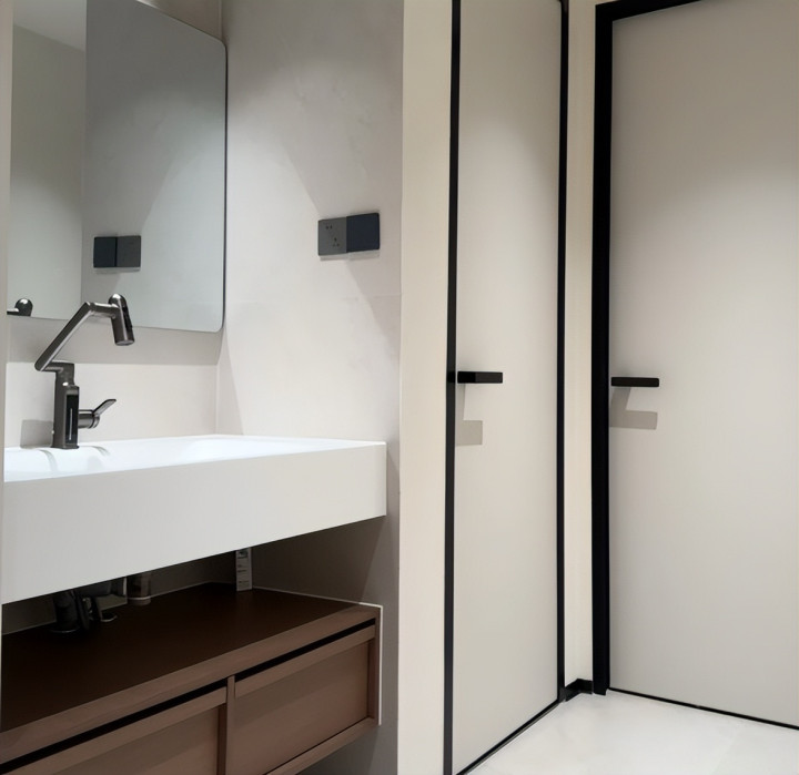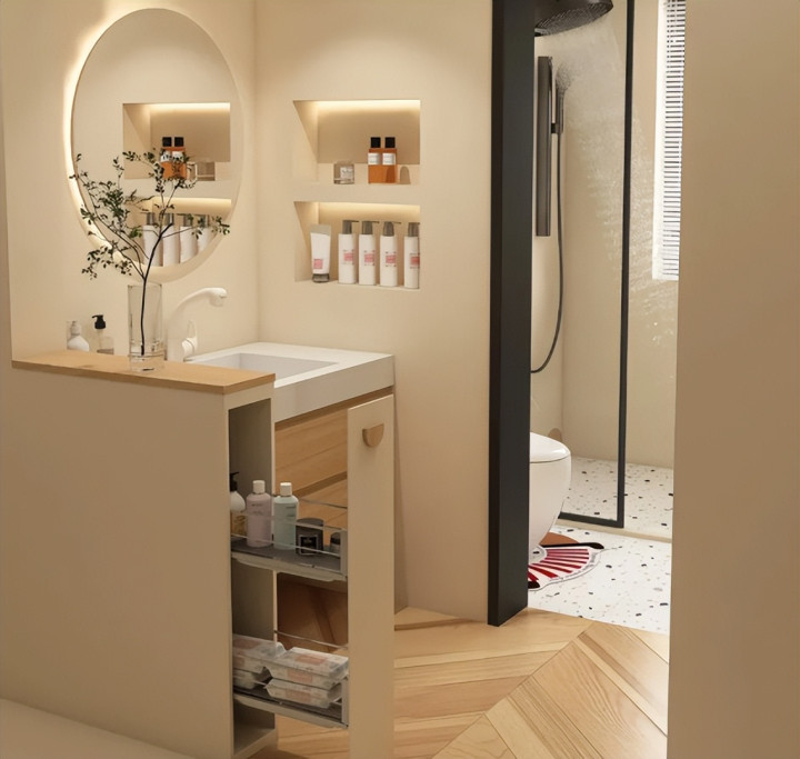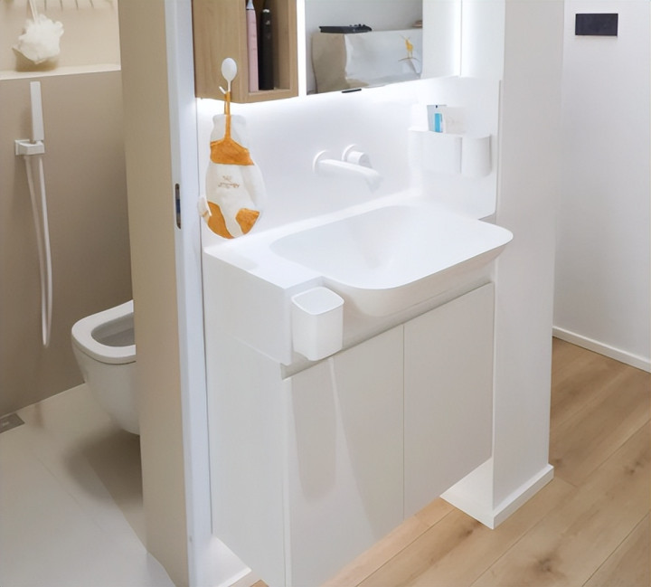 将洗手台外移实现分离是最简单的装修方式,性价比高,使用方便。