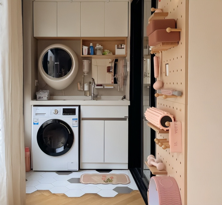 既能当做是洗衣区,还能满足我们的洗漱需求,两个功能相互不耽误,还能释放卫生间的空间。