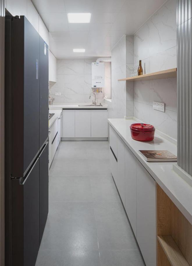 最大限度地保留了原始结构,仅改动了厨房和相连的阳台。考虑到屋主对厨房要求较高,于是把阳台纳入厨房,扩大使用面积,让厨房布置更轻松。