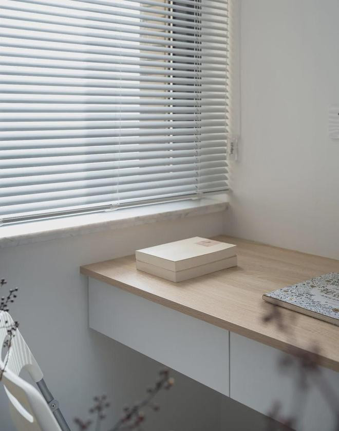 时尚的百叶窗设计,光线被百叶窗间窗棱分切,氲照在空间中,使房间有自然的生动感。